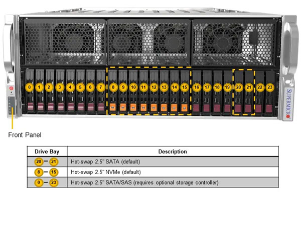| Hot-swap | 24x 2.5" hot-swap NVMe/SATA/SAS drive bays (8x 2.5" NVMe dedicated) |