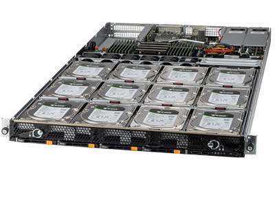 1U UP internal-mounted storage server with 12 hot-swap 3.5" SAS/SATA + 4 7mm 2.5" U.2 NVMe
